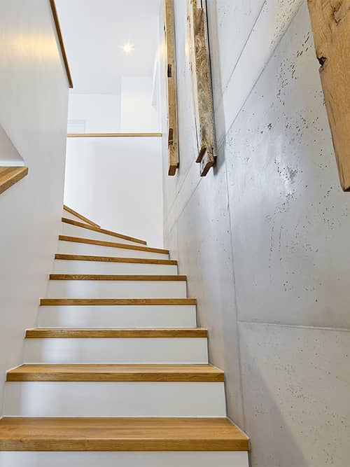 Diese Oberflächen bieten nicht nur einen zeitgemäßen Look, sondern verleihen den Röumen auch ein besonderes Raumgefühl.